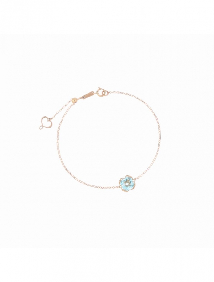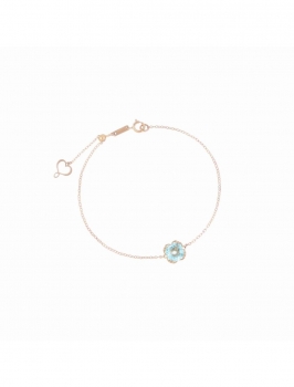 Bracciale Marie Antoinette realizzato in oro rosa 18 carati. Il bracciale presenta un castone centrale con pietra di Topazio Top quality azzurro con taglio antico di diametro 6 mm. La superficie del castone è costituita da cuori Maman intrecciati. La lunghezza del bracciale è regolabile fino ad un massimo di 18,2 cm. Cuore Maman traforato e chiusura con anello a molla.Ti potrebbe interessare anche