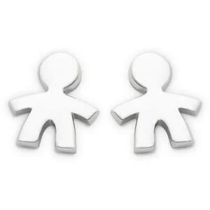 Orecchino a loba con forma di bimbo in oro bianco 18 carati. Chiusura a farfallina.