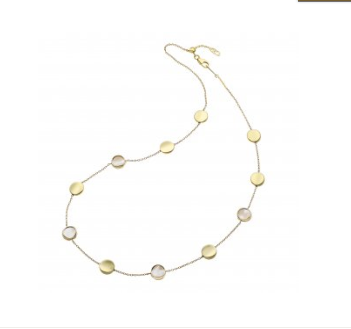 Gioielli polisensoriali che diffondono un’energia inebriante dispensando ottimismo e solarità. Catene d'oro che oscillano ad ogni gesto, generando un piacevole tintinnio. Collana lunga in oro giallo 18 kt,elementi con madreperla, lunghezza 45 cm e comoda chiusura a mosschettone. Gioiello interamente fatto a mano in Italia. Il gioiello verrà spedito con garanzia e cofezione originali ChimentoImmagini