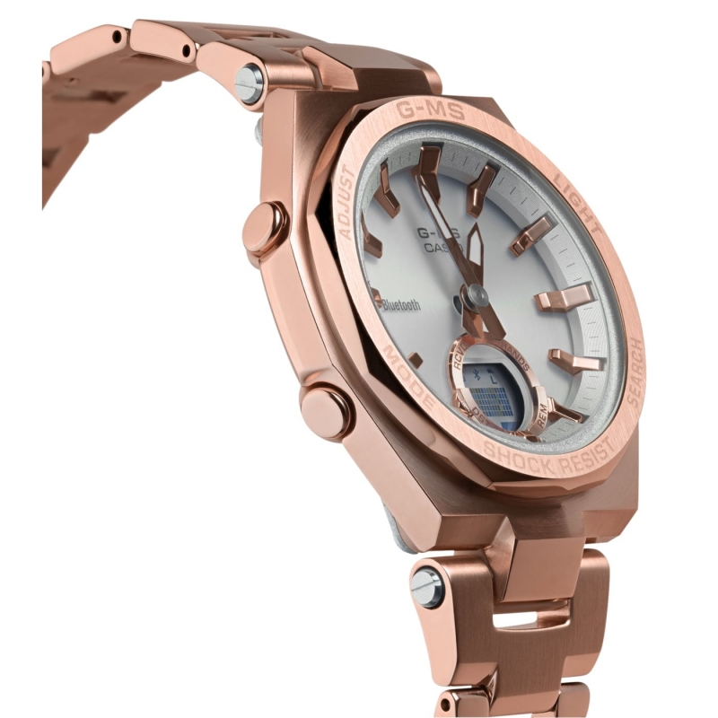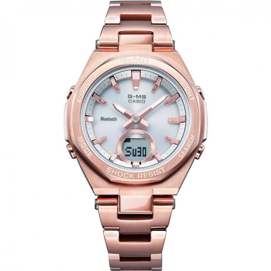 Orologio da donna della collezione Baby-g di Casio. Modello in Acciaio protetto da vetro Minerale. Le dimensioni sono di 47,5 mm x 37,2 mm x 9,7 mm; peso totale è di 75 g. Modello con diverse funzionalità come: Bluetooth, cronometro, l'allarme giornaliero e il calendario automatico Resistente all'acqua 10 atmosfere. Questo Gioiello verrà spedito con scatola e garanzia originale Casio.Immagini