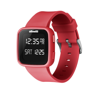 Orologio Unisex digitale di Olivetti by D1-MILANO. Le dimensioni della cassa sono: 36mm x 11.1mm con un peso di 42 g La resistenza all'acqua è di 5 atm. Il materiale della cassa è in policarbonato, con cinturino in silicone e chiusura in acciaio inossidabile. Il gioiello verrà spedito con scatola e garanzia originali.Immagini