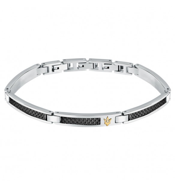 Braccialetto da uomo realizzato in acciaio anallergico con finitura lucida e trattamento ip nero. Targa centrale con logo dorato. Misura regolabile; chiusura con maglie rimovibili. L'articolo è venduto su concessione ufficiale e viene spedito in tutto il mondo completo di confezione originale e garanzia autentica 24 mesi.