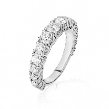 Anello da donna in oro bianco 18 carati arricchito da diamanti dal colore "F", purezza SI e 1.49ct di caratura totale appartenente alla collezione eternelle di Forever Unique. Il gioiello è interamente realizzato a mano in Italia da mastri orafi con una misura di 14 e un peso di 3.80 grammi per un anello elegante e raffinato.