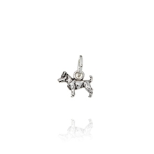Charm in argento 925 * , Jack russel di Raspini, realizzato artigianalmente a mano in Italia. Il charm è munito di maglina con logo Raspini e può essere inserito facilmente su collane, bracciali, portachiavi e orecchini, personalizzando ogni gioiello.Immagini