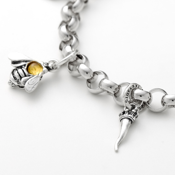 Charm in argento 925 * , con Mini Corno di Giovanni Raspini. Il charm è realizzato artigianalmente a mano in Italia, è munito di maglina con logo Raspini e può essere inserito facilmente su collane, bracciali, portachiavi e orecchini, per rendere ogni gioiello unico e personale.Immagini