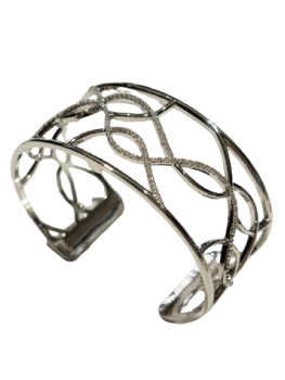 Bracciale a fascia da donna con finitura in argento 925. Questo fantastico bracciale ha una larghezza di 25 mm con una comoda apertura regolabile che si adatta ad ogni polso. Per un look decisamente femminile, personalizzalo con gli inserti in cuoio o vinile venduti separatamente nella sezione "inserti Les Georgettes" con una vasta scelta di temi e colori. I gioielli Les Georgettes vengo spediti con scatola originale.