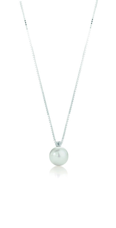 Girocollo con pendente in oro biaco 18kt , perla coltivata d'acqua dolce di alta qualità e diamante. La raffinatezza dell’oro bianco, la luminosità dei diamanti e l’unicità delle perle, una bellezza che incanta. La perla misura 7.5/8 Diamante di 0.02 ct La collana ha una lunghezza di 40cm. Comoda chiusura a moschettone. Il gioiello è interamente realizzato in Italia da maestri orafi e verrà  spedito con scatola e garanzia originali.