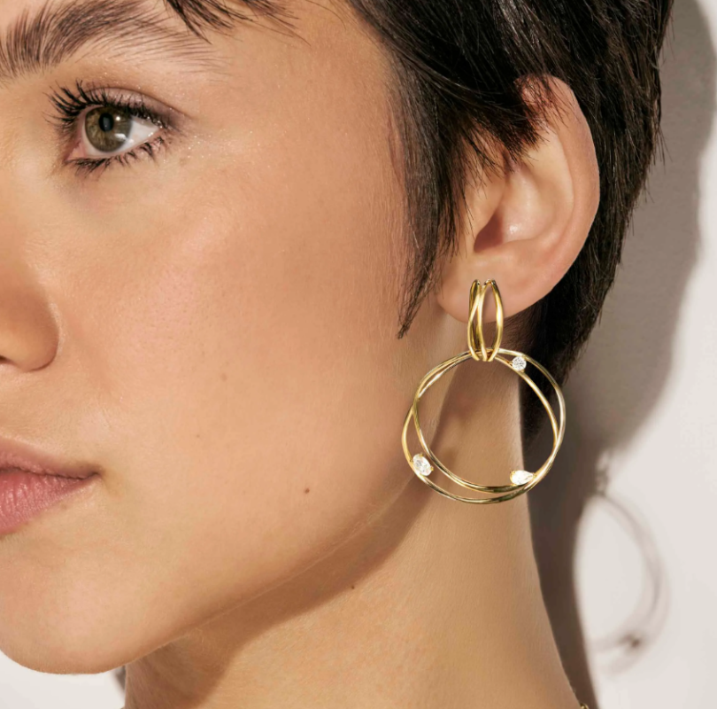Orecchini in argento con maxi pendente circolare, definiti da linee fluide e sinuose che donano carattere a un gioiello importante ma sempre raffinato. I tre zirconi incastonati aggiungono il punto luce ideale per illuminare il volto con una brillantezza discreta e sofisticata. Disponibile con rivestimento superficiale in rodio bianco o oro giallo . Il gioiello verrà spedito con scatola e garanzia originali.Immagini