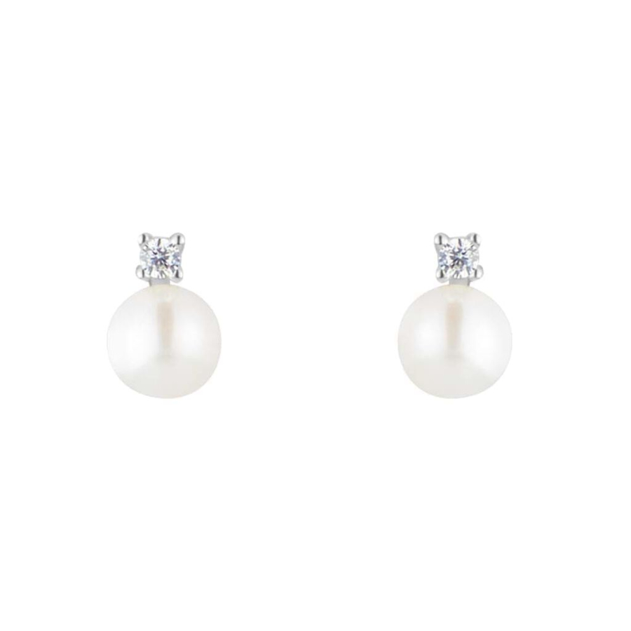 Orecchini con chiusura a farfallina in oro bianco 18kt e diamanti. Le perle sono coltivate d'acqua dolce di alta qualità. i diamanti hanno una caratura 0.04ct Semplicità ed eleganza si uniscono in questi orecchini di perle, impreziositi dall'oro bianco. Pratici da indossare e facili da abbinare, donano un tocco di luminosità . La perla misura 7.5/8mm. Il gioiello è interamente realizzato in Italia da maestri orafi e verrà  spedito con scatola e garanzia originali.