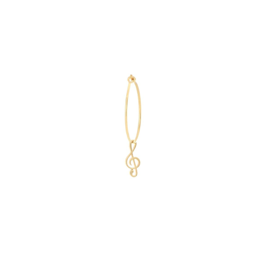 Orecchino a cerchio singolo realizzato in argento 925 con galvanica oro giallo ad alto spessore e resistenza. Il cerchio medio ha un diametro di 19 mm e presenta una chiave di violino pendente di lunghezza 12 mm. Il gioiello verrà spedito con scatola e garanzia originale.Ti potrebbe interessare anche