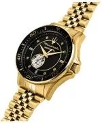 Maserati Sfida Open Heart Automatic SET è un orologio da uomo con cinturino in pelle nera aggiuntivo, cristalli e dettagli dorati. Il meccanismo automatico con funzione open heart consente di ammirare il funzionamento dell'orologio, mentre il vetro zaffiro protegge il quadrante. La lunetta oro-nero e la resistenza all'acqua fino a 100 metri rendono l'orologio elegante sia per l'uso quotidiano che per le occasioni speciali. Lorologio verrà spedito con scatola e garanzia originali MaseratiImmagini