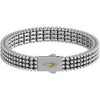 Braccialetto da uomo realizzato con catena a maglie ovali in argento 925% rodiato. Targa centrale con con spinelli neri e logo del brand. Ha lunghezza totale di 21 cm, regolabile. Chiusura a moschettone. L'articolo sarà venduto su concessione ufficiale e viene spedito in tutto il mondo completo di confezione, shopper e garanzia autentica valida 24 mesi.