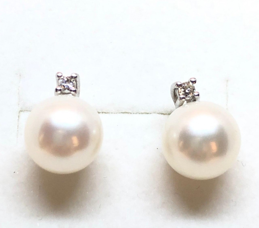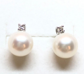 Orecchino in oro bianco 18 carati con diamante e perla 6-6.5 Chiusura a farfallina.