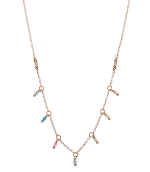 Una raffinata collana in argento 925 impreziosita da piccole pietre di giada arcobaleno, con pendenti singoli per ogni colore dell'arcobaleno, che pendono delicatamente lungo la catena. Un design armonioso e colorato per un tocco di luminosità.