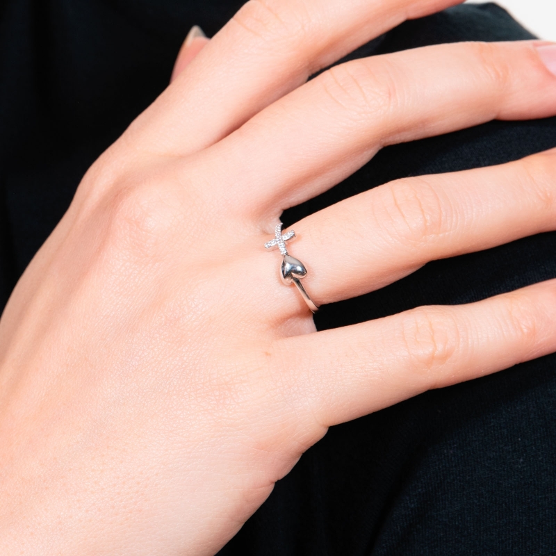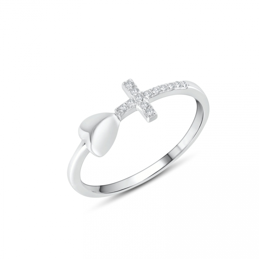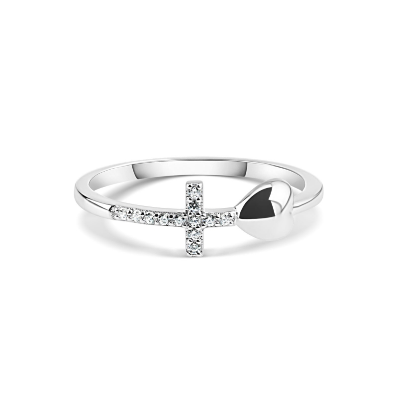 Anello da donna in argento 925 con croce impreziosita da zirconi e cuore in finitura lucida Le pietre sono zirconi cubic incastonate a mano. L'argento è placcato in rodio, rigorosamente “nickel free†che conferisce al gioiello una brillantezza e resistenza all'usura nel tempo. Interamente realizzato in Italia. Quest'anello viene spedito con scatola e garanzia originale.Immagini
