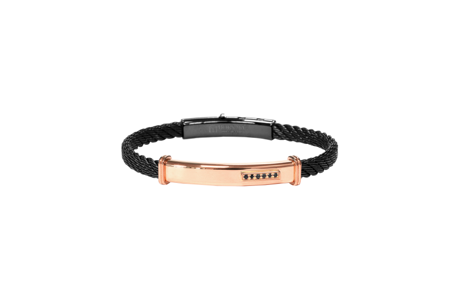 La collezione è pensata per coloro che abbracciano il minimalismo e l’essenzialità nella loro ricerca di stile. Questa collezione si rivolge a chi trova il proprio benessere nell’elegante purezza degli elementi nobili. Oro, diamanti e pietre preziose non solo definiscono il design di Orus, ma ne sono anche elementi funzionali che riflettono l’equilibrio tra forma e funzione. Orus è destinato a chi ha una profonda connessione con la bellezza. Questi gioielli non solo offrono un’estetica inconfondibile, ma anche una sensazione di benessere interno. Il lusso intrinseco degli elementi nobili utilizzati si fonde armoniosamente con la purezza estetica, creando gioielli che emanano un’eleganza senza tempo.Ogni dettaglio, ogni sfumatura di design, è studiato per avvolgere chi indossa i gioielli con una sensazione di sensualità e raffinatezza. Non è solo una collezione di gioielli, ma un modo di esprimere la propria personalità attraverso l’arte della sottrazione, lasciando che la bellezza essenziale parli da sola.Bracciale in oro 18 kt e Chiusura in Oro 18 kt con Diamanti neri.Cinturino in Acciaio PVD colorato Il gioiello verrà spedito con scatola e garanzia originali Borsari