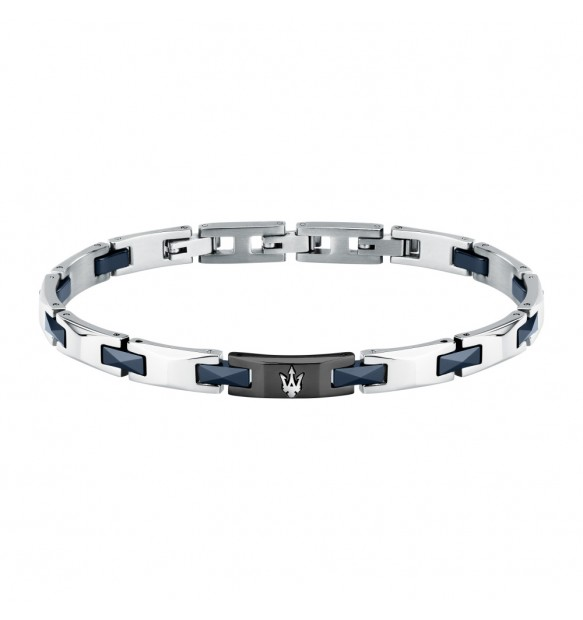 Braccialetto da uomo realizzato in acciaio anallergico. Centrale nero e inserti in ceramica blu. Misura regolabile; chiusura con maglie rimovibili. L'articolo è venduto su concessione ufficiale e viene spedito in tutto il mondo completo di confezione originale e garanzia autentica 24