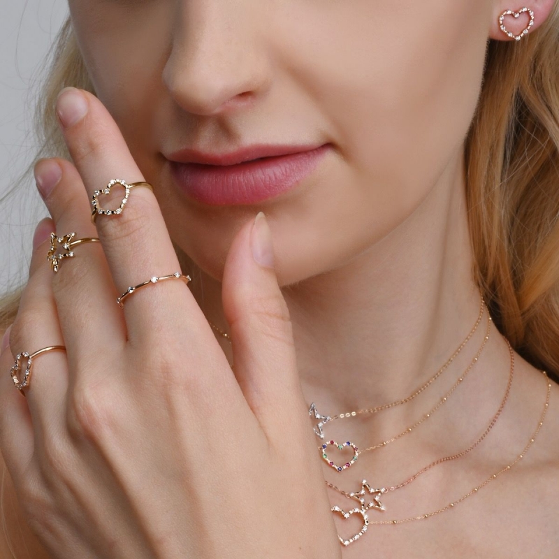 Orecchino singolo a lobo in Oro Rosa 18 carati e diamanti della collezione Aurum di Maman et Sophie. I diamanti presenti sono naturali, con colore: G+ e purezza: SI Il cuore piccolo misura 12,6 mm x 10,3 mm. Chiusura a farfallina. Il gioiello verrà spedito con scatola e garanzia originali.