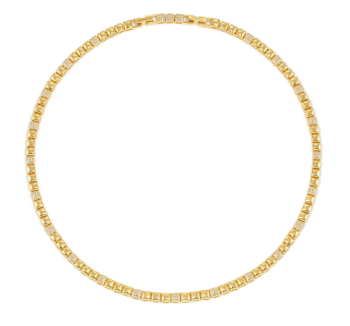 Collana in Argento e Pavé di Cubic Zirconia, con rivestimento superficiale, realizzato mediante bagno galvanico, in Oro Giallo. Questo gioiello unisce eleganza e luminosità in un design sofisticato, con le sue linee fluide e i suoi elementi geometrici. Un accessorio lussuoso che illumina ogni tuo momento con un tocco raffinato e contemporaneo. Il gioiello verrà spedito con scatola e garanzia originali.Immagini
