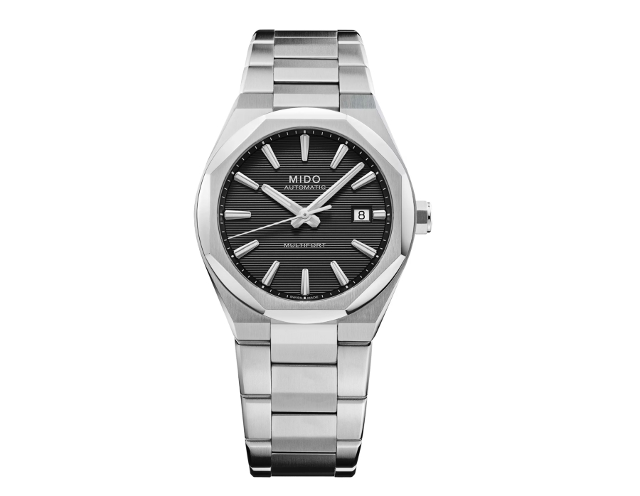 Con le sue linee pulite, la cassa equilibrata da 40 mm e la caratteristica lunetta ottagonale, il Multifort 8 One Crown sfoggia un design audace e contemporaneo. Il quadrante, strutturato con scanalature orizzontali, gioca con il ritmo e la profondità, mentre il Super-LumiNova® assicura una perfetta leggibilità. Un vetro zaffiro con trattamento antiriflesso su entrambi i lati protegge il quadrante, impreziosito da una cassa in acciaio satinato con bordi lucidi. Animato dal Calibro 80 - movimento automatico svizzero ad autonomia estesa, visibile attraverso il fondello trasparente - questo segnatempo riflette la visione di MIDO della TECNOMETRIA: una fusione armoniosa di tecnologia e geometria. Robusto, preciso ed elegante, il Multifort 8 One Crown è fatto per chi esige l'eccellenza con carattere.