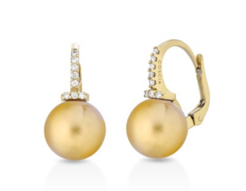 ORECCHINI IN ORO GIALLO18 KT CON PERLE AUSTRALIANE GOLD E DIAMANTI DI COSCIA