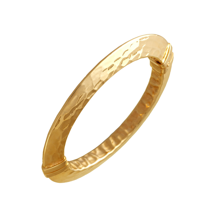 Bracciale relizzato a mano in argento 925 con bagno in oro giallo. Vuoto internamente, molto leggero da indossare. Il diametro interno misura 6×5,5 cm. Apertura a molla, comodo e veloce da mettere al polso. Accompagnata da confezione e garanzia ufficiale Giovanni Raspini.