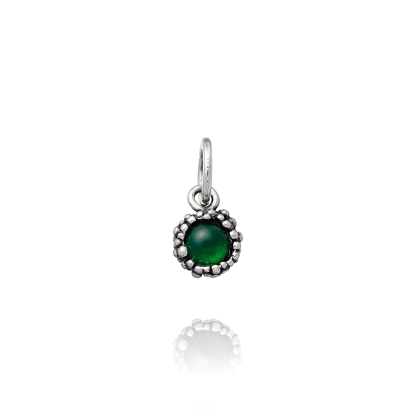 Charm in argento 925 della collezione Perlage di Giovanni Raspini. Con pietra naturale Onice verde, munito di maglina con logo e un peso di 2,5 grammi. La lunghezza totale è di 1,3 cm interamente realizzato a mano in Italia. Viene spedito con scatola e garanzia originali Giovanni RaspiniImmagini