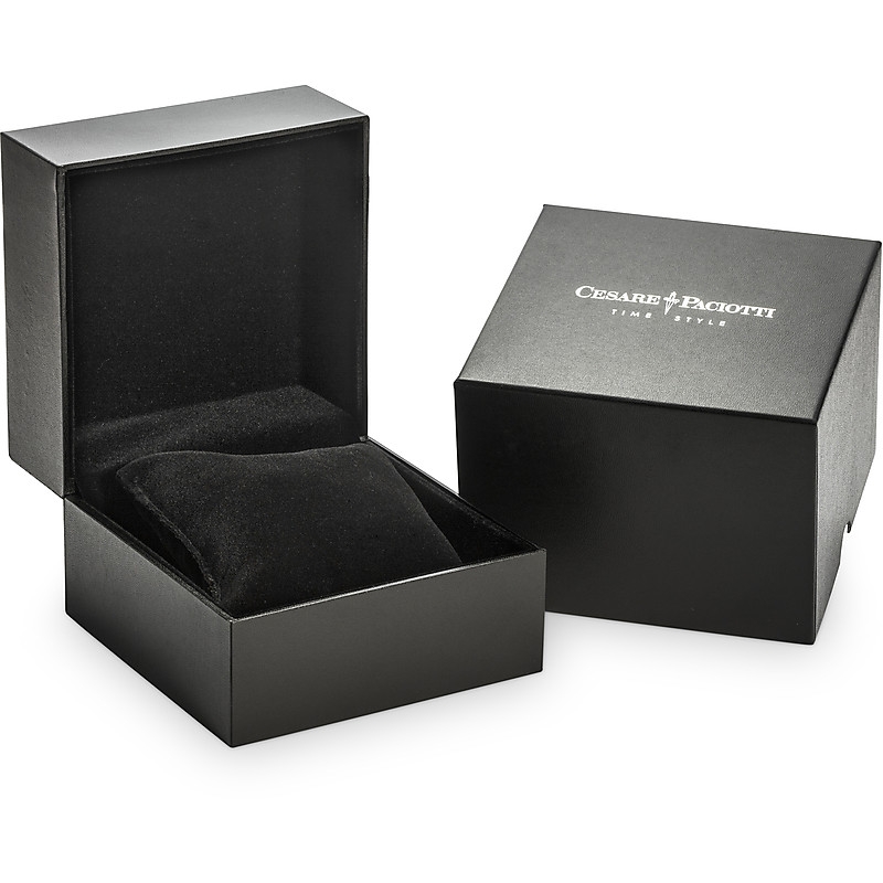 Orologio da uomo di Cesare Paciotti La cassa è in acciaio con un diametro di 43 mm, cinturino in acciaio. La resistenza all' acqua è di 100 atm (10 metri) Il gioiello verrà spedito con scatola e garanzia di 24 mesi, originali Cesare Paciotti.Immagini