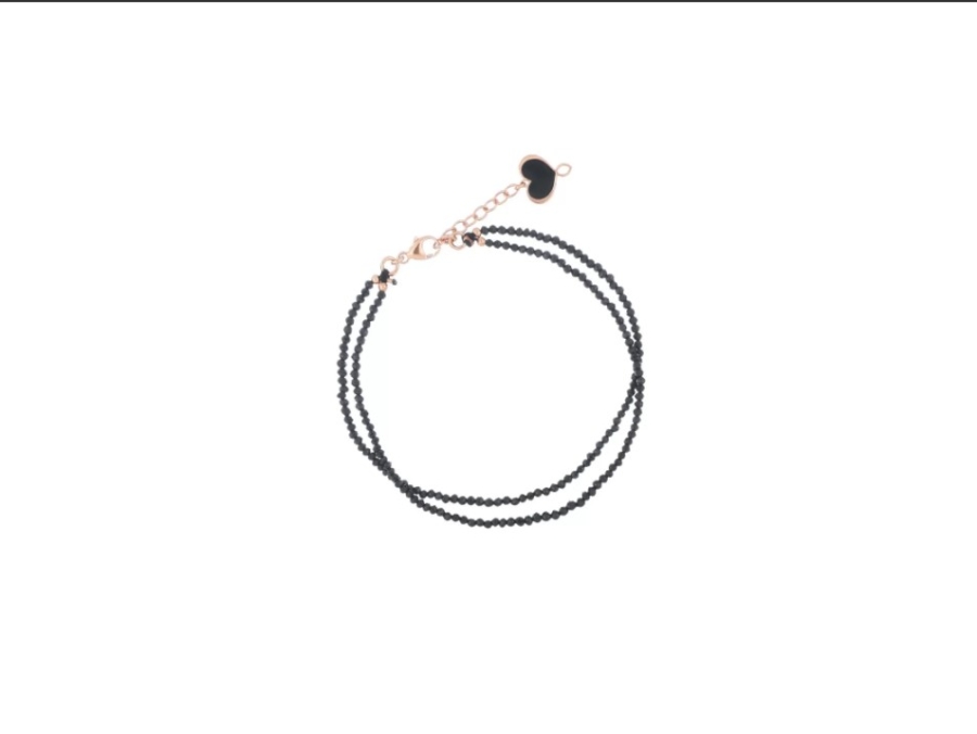 MAMAN ET SOPHIE BRACCIALE PENTAGRAMMA IN ARGENTO PLACCATO ORO ROSA E SPINELLO Collezione: Pentagramma Materiale: Argento 925 placcato oro rosa ad alto spessore Pietre: spinello Misura: regolabile da 18 cm a 21 cm cuore Maman smaltato nero Chiusura a moschettone Made in Italy Codice prodotto: BRPEN2