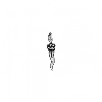 Charm in argento 925 * , Corno con corona di Raspini. Il charm è realizzato artigianalmente a mano in Italia, è munito di maglina con logo Raspini e può essere inserito facilmente su collane, bracciali, portachiavi e orecchini, per personalizzare ogni gioiello in modo unico e originale.Immagini