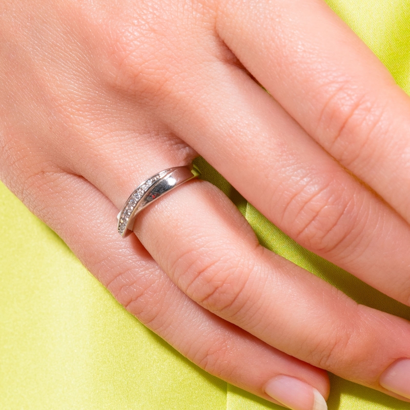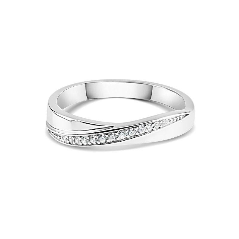 Anello da donna in argento 925 della collezione Elegance di Anellissimo con una fila di zirconi bianchi che attraversa la parte superiore dell'anello da un lato, realizzato con precisione e cura nei dettagli. L'argento è placcato in rodio, rigorosamente “nickel free†che conferisce al gioiello una brillantezza e resistenza all'usura nel tempo. Quest'anello viene spedito con scatola e garanzia originale.Immagini