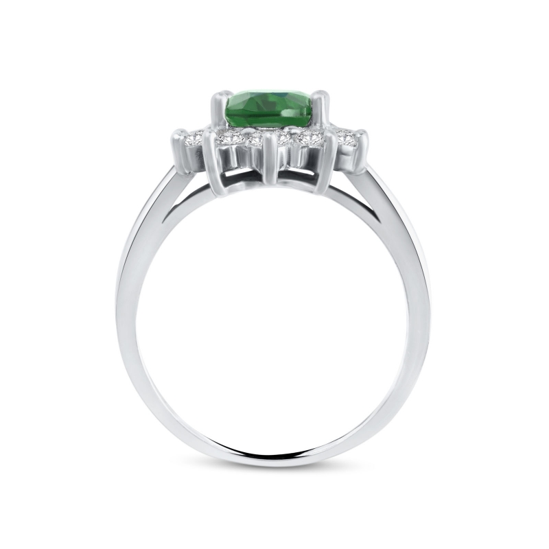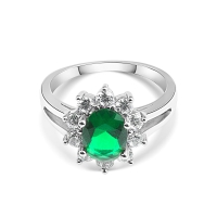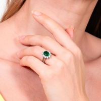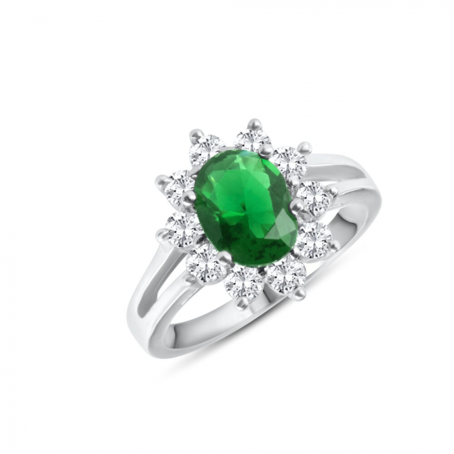 Anello da donna in argento 925 della collezione Elegance di Anellissimo, con pietra taglio ovale color smeraldo e corona di zirconi bianchi taglio brillante, realizzato in Italia con precisione e cura nei dettagli. L'argento è placcato in rodio, rigorosamente “nickel free†che conferisce al gioiello una brillantezza e resistenza all'usura nel tempo. Quest'anello viene spedito con scatola e garanzia originale.Immagini