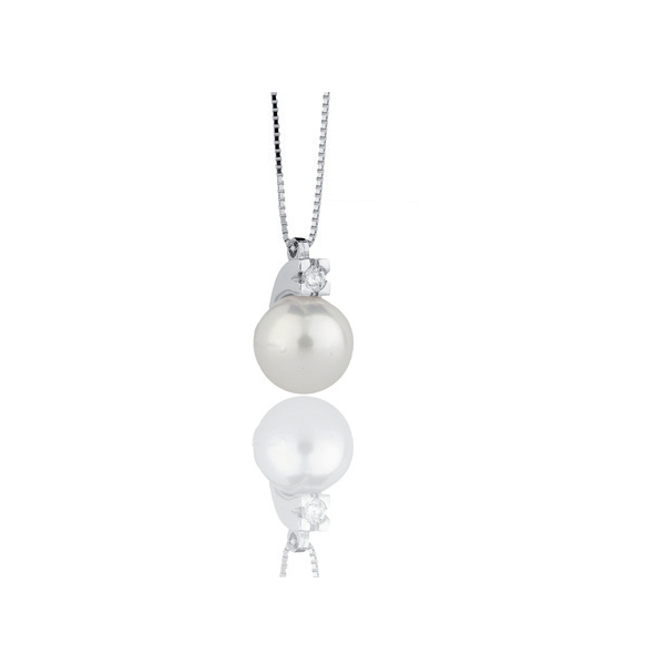 Collana in Oro bianco 18 kt impreziosita da pendente Perla giapponese Akoya di 6.5/7mm e da un diamante dalla caratura di 0.02 ct. La collana è regolabile da 40 a 43 cm con comoda chiusura a moschettone. Il gioiello è prodotto interamente in Italia da maestri orafi. Questo Gioiello verrà spedito con garanzia e scatola originali Coscia.