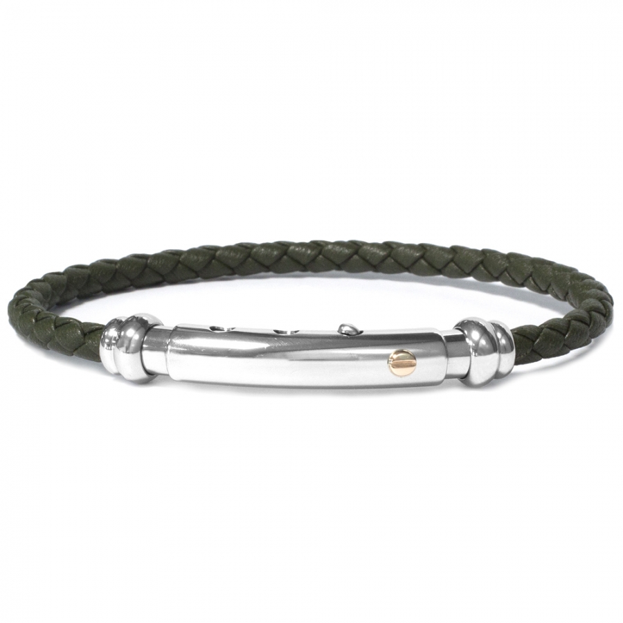Il bracciale in pelle da uomo Borsari è parte della linea Corda, così chiamata perché si rivolge all'uomo che vuole indossare gioielli carismatici e che sanno riflettere il suo stile. La forte pelle naturale si lega infatti ad una vite in oro 18 carati che rende il gioiello infinitamente più prezioso e consistente.