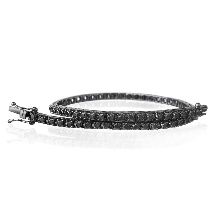 Bracciale Tennis in oro brunito 18 carati della collezione Febe di Forever Unique. Bracciale impreziosito da diamanti neri taglio brillante con caratura 3.50 e un peso di 10.70 grammi. Questo bracciale ha una lunghezza di 19 cm con doppia chiusura. Ideale sia da uomo che da donna. Il Bracciale viene spedito con scatola e Garanzia Originale Forever Unique.