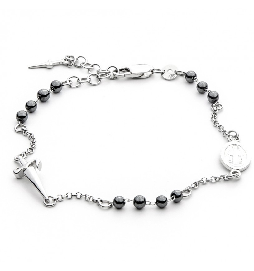 Bracciale rosario in argento 925 da Uomo con perle di ematite di Cesare Paciotti. Interamente realizzato a mano in Italia, la lunghezza del gioiello è di 18 + 4 cm Il gioiello verrà spedito con scatola e garanzia di 24 mesi, originali Cesare PaciottiImmagini