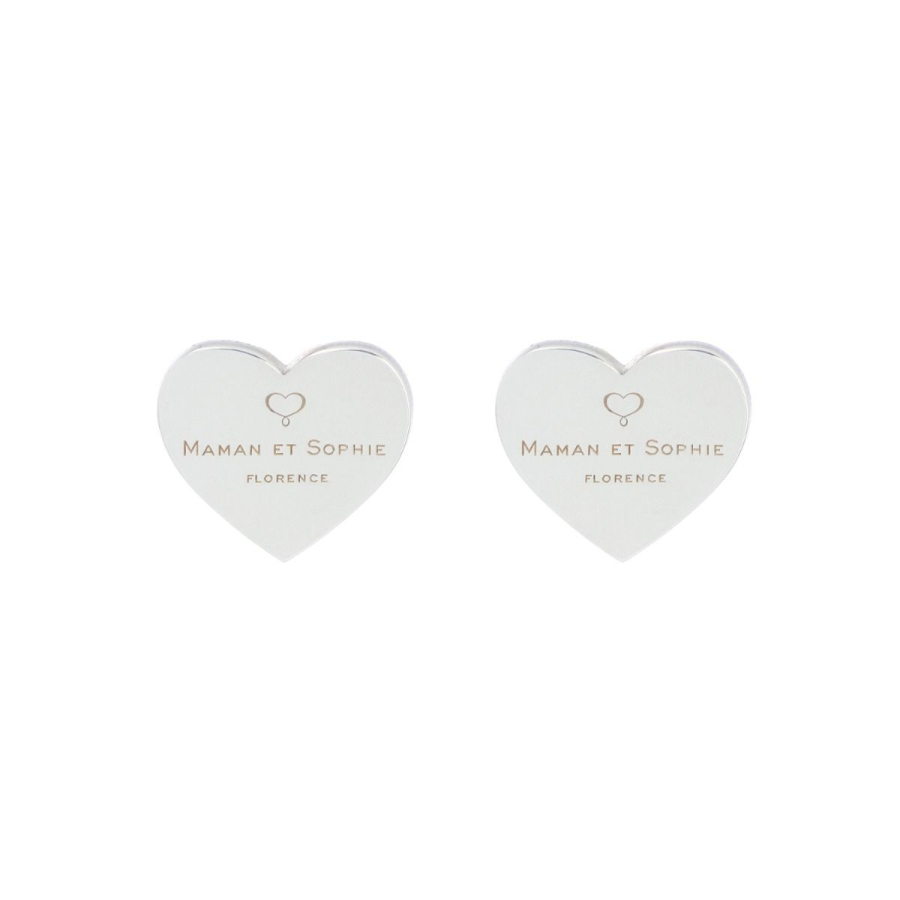Coppia di orecchini a lobo cuore con inciso logo Maman et Sophie realizzati in argento 925 ad alto spessore e resistenza. Il cuore misura misura 11 mm. Chiusura a farfallina.