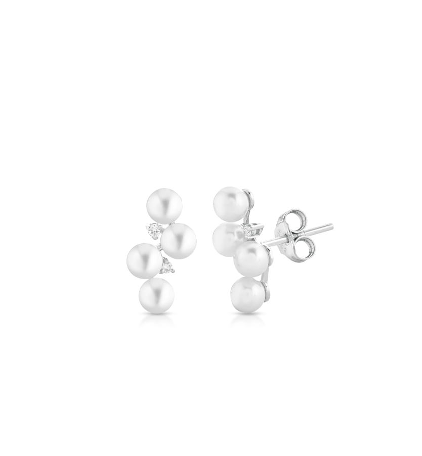 ORECCHINI IN ORO BIANCO 18 KT CON PERLE EDISON E DIAMANTI DI COSCIA