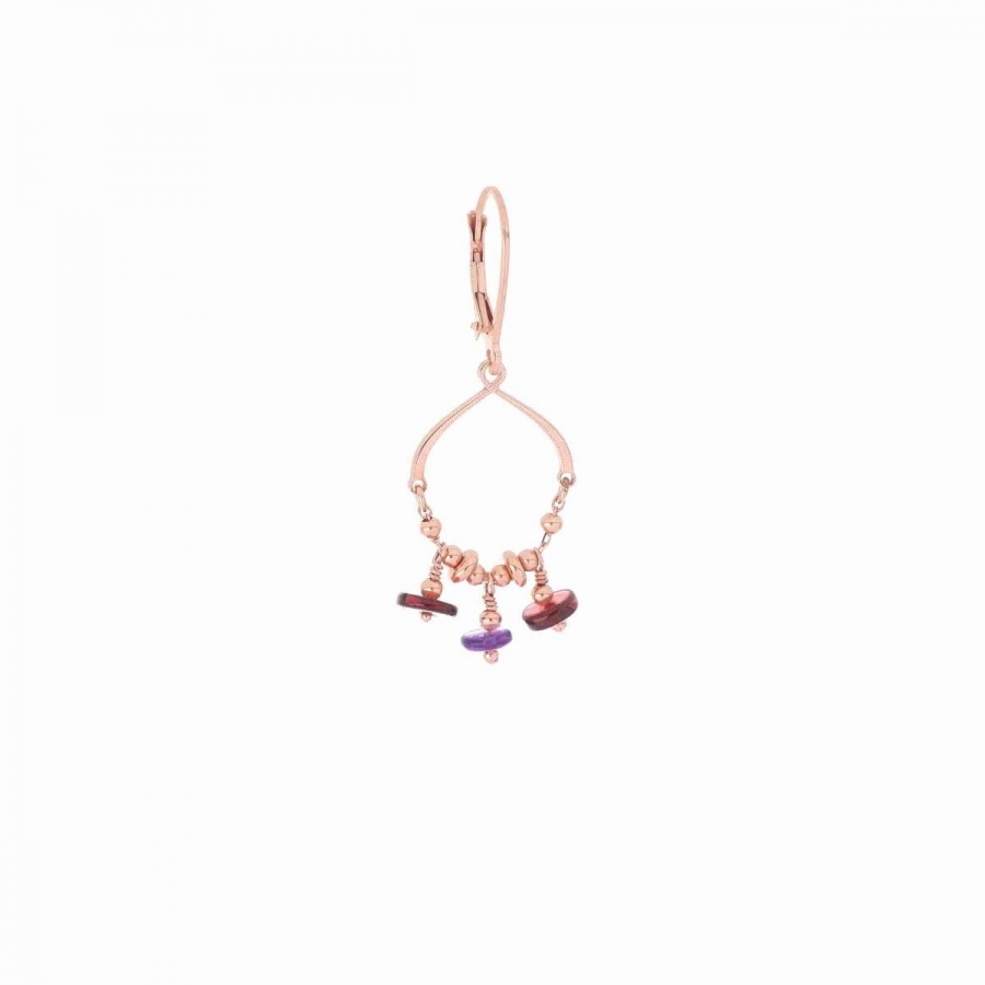 Mono orecchino singolo a monachella da Donna in argento 925 placcato in oro rosa 18 kt della collezione Seulement Sophie di Maman et Sophie. L'orecchino presenta una sezione di cuore Maman capovolto, pietre di Granato rosso, Ametista viola e sfere decorative. La lunghezza totale dell'orecchino è di 35 mm. Il gioiello verrà spedito con scatola e garanzia originali Maman et Sophie.