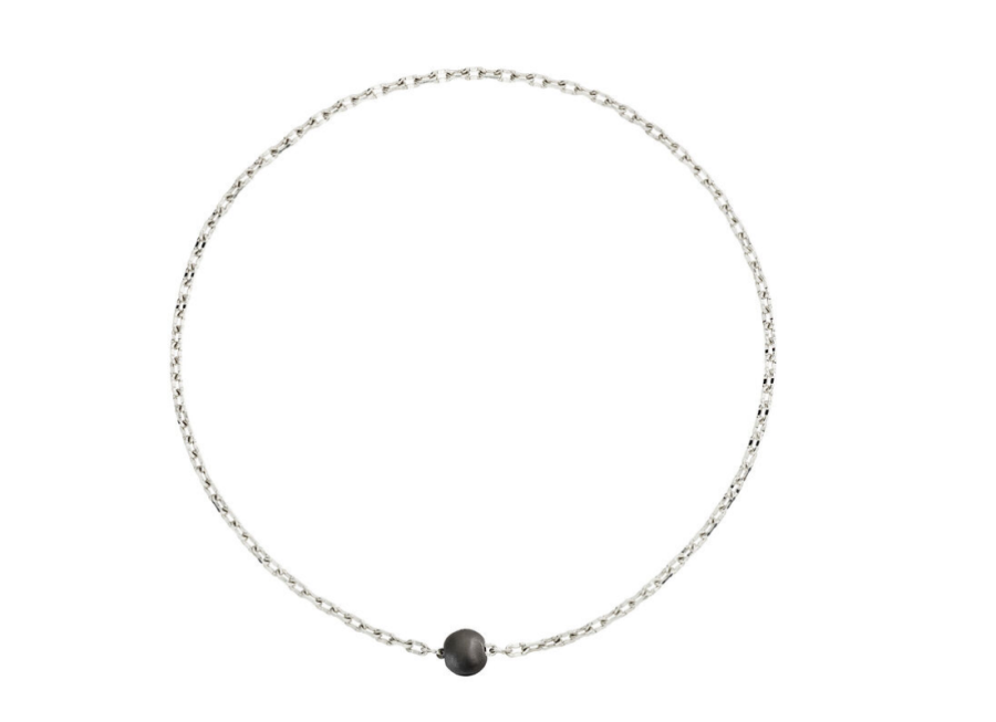 Collana Pepita in argento 925, chiusura in titanio e anello brisé in acciaio. Il gioiello verrà spedito con scatola e garanzia originali.