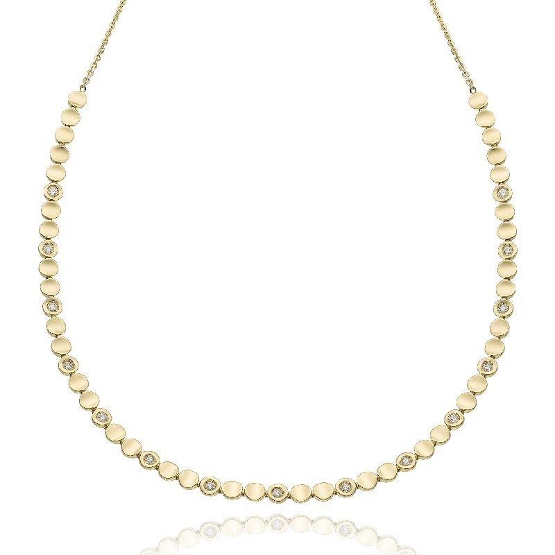 Gioielli polisensoriali che diffondono un’energia inebriante dispensando ottimismo e solarità. Catene d'oro che oscillano ad ogni gesto, generando un piacevole tintinnio. Girocollo in oro giallo 18 kt con diamanti. Carati totali: 0.45 ct Il gioiello verrà spedito con garanzia e cofezione originali Chimento