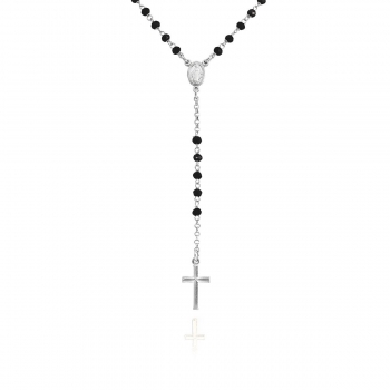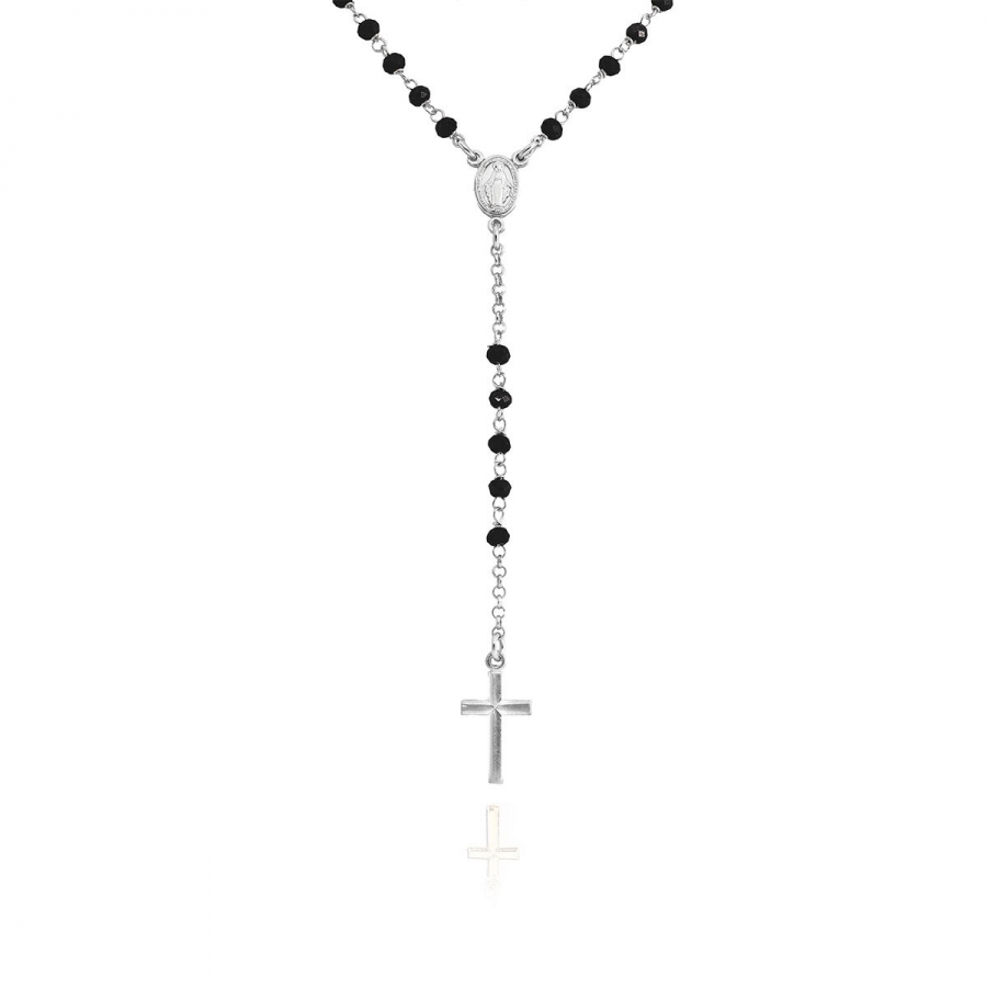 Collana in argento 925 con critalli. Il rosario è disponibile nella versione placcato rosè o argento. La lunghezza complessiva della collana è di 48 cm più 2 cm di allungo per un gioiello dal forte spirito ed adatto a ogni look.Immagini