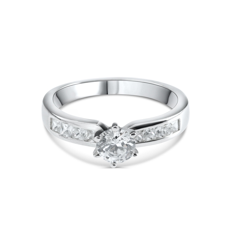 Anello da donna in argento 925 della collezione Emotions di Anellissimoon pietra grande taglio brillante su castone a 6 griffe e zirconi taglio carrè a ricoprire parzialmente i lati, realizzato con precisione e cura nei dettagli. L'argento è placcato in rodio, rigorosamente “nickel free†che conferisce al gioiello una brillantezza e resistenza all'usura nel tempo. Quest'anello viene spedito con scatola e garanzia originale.Immagini