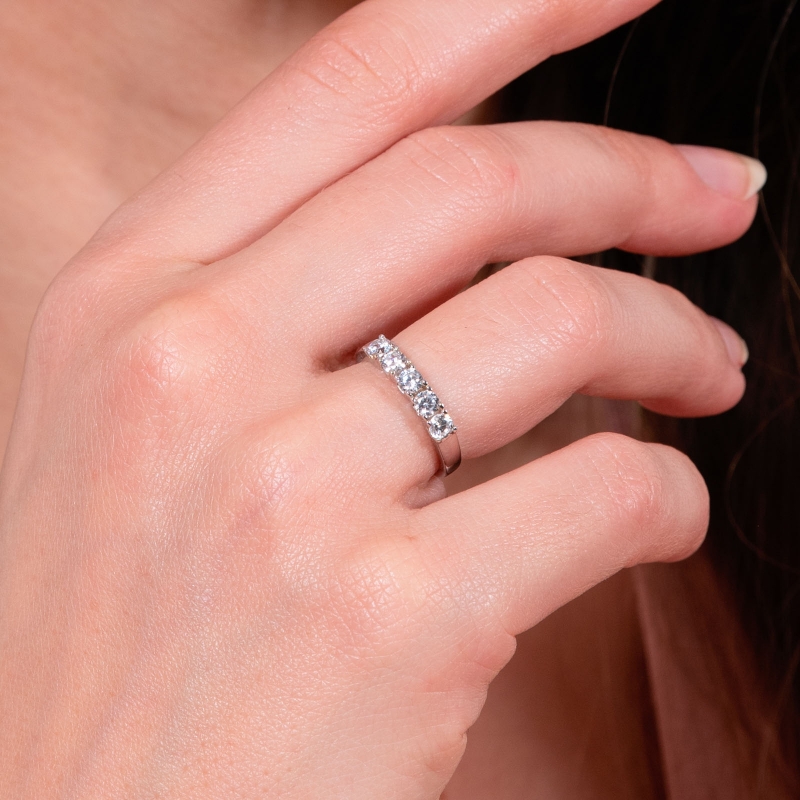 Anello da donna in argento 925 della collezione Emotions di Anellissimo con 5 pietre cubic zirconia taglio brillante incastonate a mano sulla parte superiore, realizzato con precisione e cura nei dettagli. L'argento è placcato in rodio, rigorosamente “nickel free†che conferisce al gioiello una brillantezza e resistenza all'usura nel tempo. Quest'anello viene spedito con scatola e garanzia originale.Immagini