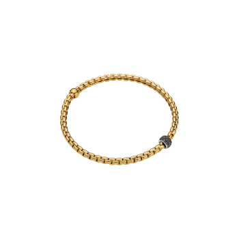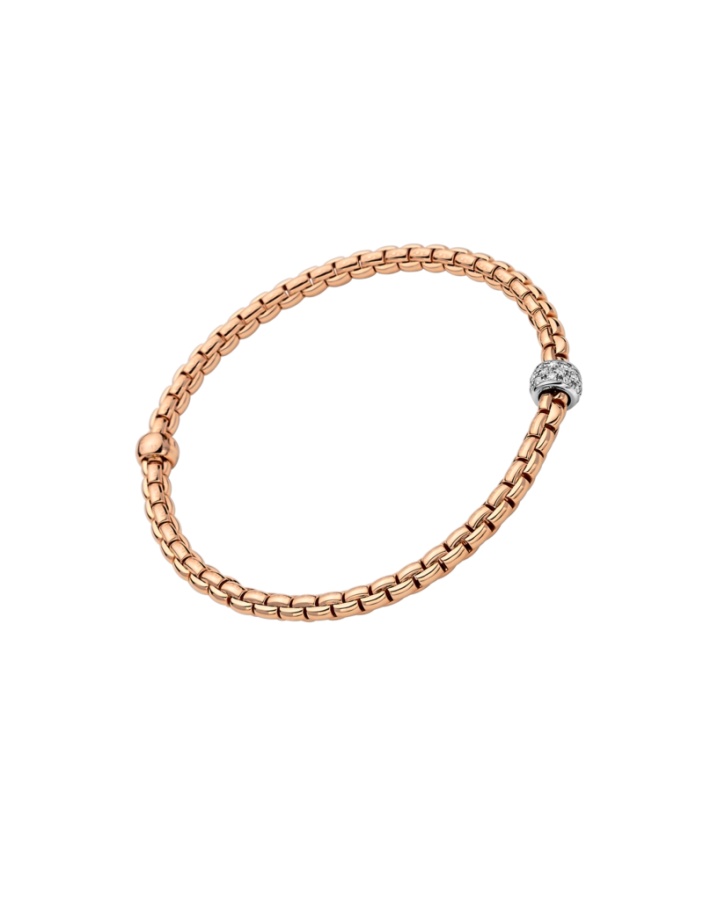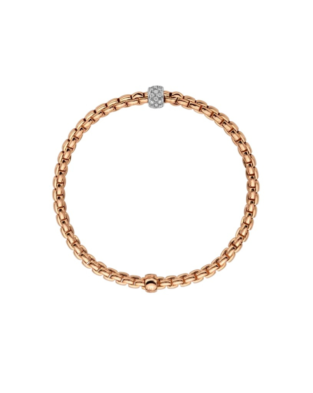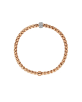 Bracciale da donna flessibile di FOPE interamente realizzato in oro 18 carati , con rondelle in oro bianco e pavé di diamanti. La caratura dei diamanti è di 0.19 totale. Il gioiello è interamente realizzato a mano in Italia da mastri orafi e verrà spedito con scatola e garanzia originali.Immagini