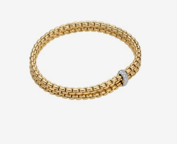 Fope Gioielli dà il suo meglio nei bracciali della collezione, flessibili, interamente realizzati in oro 18 carati, con rondelle in oro e pavé di diamanti. La caratura dei preziosi è elevata, per gioielli interamente realizzati a mano in Italia da maestri orafi e disponibili nelle versioni dove l'oro mantiene il suo colore naturale, ma anche dove sa vestirsi di bagliori inaspettati e di gemme preziosissime come i diamanti neri.